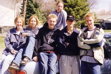 Guffer (in hat) with cousins, Amber, Sandy, Barney, Andy and Auntie Marcie.