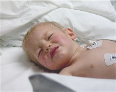 Jordan was such a joy to all. He was always happy and smiling. His white hair radiated his "sunshiny" personality. Everyone that knew him was always telling us how cute he was and what a good happy boy he was. He was the 7th of 8 boys. He had been a "BIG" brother for just about 2 months when he died and loved his little brother. He loved all of his brothers. But he seemed to have a special bond with his biggest brother Adam. He was always mommies "sugar plum". Any time I would try and leave him home while I ran to the store, he would always say "But mommy, I's your sugar plum." Many many times he would go with Daddy to maverik to fill me (mommy) a mug of ice water and the workers there would always comment about how that mug was bigger than he was. He loved kitties and would sit out in our porch swing many times swinging with the kitties. He loved playing "inthetendo" (nintendo) with his brothers. He liked to hit himself in the head and say "I'm a doofus." He called chocolate "chalockate." He liked playing daddies "pooter" (computer) and liked mass worpshop (math workshop) the best. He liked to tease the other boys when he'd get to go somewhere and tell them that he got to go "wissout you." He was just such a sweet spirit and from the time he was born, we often commented on how he just seemed to have a special little spirit. He was always so calm and happy and made others around him happy. He got sick on October 26th, 2003. We thought he just had the flu or something similar. Kids get sick all the time. That was a Sunday evening. The following morning, on one of his MANY trips to the bathroom, I noticed a bloody mucous in his stool. I told Brad I thought he better go to the doctor so I took him. They ran a blood test and found it to be bacterial. They gave me and antibiotic to give him and said if he wasn't getting better by the next day to bring him in. The next day he didn't seem any better so I took him back. They then gave him an antibiotic shot. By the following day, he just was not getting any better. By noon, I had Brad take him to the ER to see what was wrong. They spent the afternoon there and decided he better go down to primary childrens hospital in Salt Lake City Utah. Once down there, they ran many tests and discovered he had HUS (hemolytic uremic syndrome). They feel the only way kids get this is from e coli. Although Jordan tested negative for e coli, it simply could have just been out of his system by then and he was testing positive for a toxin that is also seen with e coli. Giving him the antibiotic could have been what caused the e coli to turn into HUS. He just basically went downhill each day and by the following Sunday....just one week after he first showed signs of illness, Brad called me and told me I better come down. (I couldn't be there in the first place because we have a two month old preemie baby that I am nursing and I couldn't leave him...nor did we feel it would be good to take him to the hospital and expose him to whatever may be there.) That evening, my brother and his wife drove me there. When I got to him, I could tell his life was already gone. The following day, we had Brad's parents and my parents come and bring the boys so they could say their final goodbyes to Jordan. They took him off life support Monday November 3, 2003 and within minutes, he was "officially" gone. He will be remembered always as our "sunshine" and "mommies sugar plum." Forever our angel.