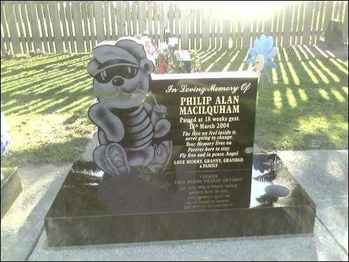 Our precious son Brian was stillborn on Dec 26 2002.Brian is a very much loved a dearly missed Son,Brother,Grandson,Nephew and cousin.Sadly he was joined by his little cousin (Philip Alan Macilquham) 15 months after his death so we get the comfort in knowing that our two precious angels are together in heaven.We love you both so much and we will never stop loving you both and you are forever missed. Lots of love forever and ever, your loving family Mummy,Daddy,Charmaine and Daniel XXXXXXX