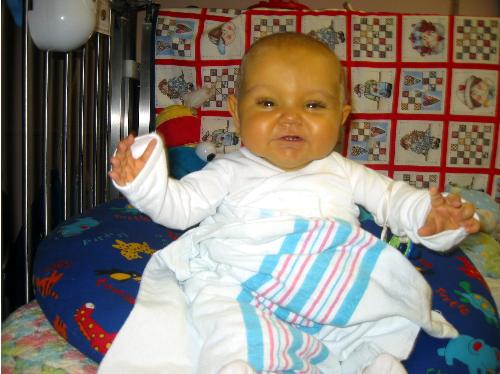 Shane went through alot of surgeries and alot of tubes and wires in him constantly. He really never got the chance to leave the hospital,he was just 3 days old for his first surgery that took away most of his intestine. From that moment on our life and that of our families was praying and being with Shane at the hospital.Shane was absolutly beautiful, I have never seen a happier baby in my life, and he was ours I was so proud, But it was Shanes spirit that touched everyone who met him, for such a little baby he touched so many people. I know this because they told us.I am glad to have had the opportunity and blessing to be Shanes mom, and to meet the wonderful and beautiful nurses, doctors and volunteers at the hospital. I hope this page is a nice place for them and all of us to come and remember him.