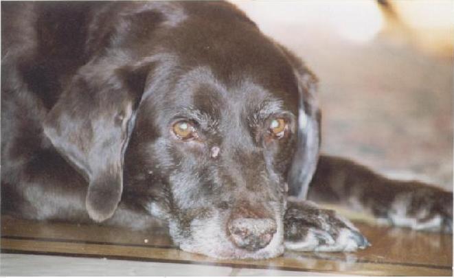 Sadie was are chocolate lab that will always be a permament member of our family. She had big shimmering brown eyes that I always thought reminded me of tootsie pops. And of course she had that tail that used to knock me down when I was first learning to walk. In 2000 she was diagnosed with heart disease and was given 3 months to live. Unfourtnatly, that tail stoped wagging and she turned into a much older, slower dog. That three months turned into 3 years and this past february we put her asleep as her body began to shut down. The most comfurting part about her passing is the fact that as they gave her the first shot, he tail started wagging again, just like from before. Finally she was in a place with no more pain.